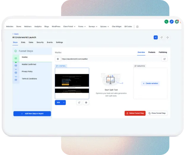 Create stunning websites and high-converting funnels in minutes using drag-and-drop tools and proven templates. Whether you’re selling courses, coaching, or services, you’ll launch pages that attract, convert, and grow your business